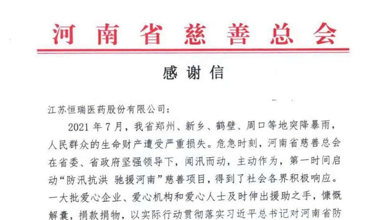 亚美国际官方医药向河南省慈善总会捐赠1000万元,用于公共卫生系统灾后恢复和建设发展等工作。